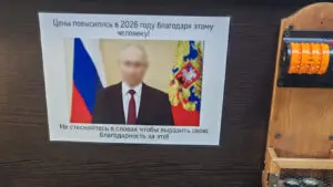 În orașul Buzuluk, regiunea Orenburg, la una dintre casele unui magazin a apărut un afiș cu fotografia blurată a președintelui Vladimir Putin, însoțită de un mesaj ironic referitor la scumpirile recente: „Prețurile au crescut în 2026 datorită acestui om! Nu vă sfiiți să-i mulțumiți pentru asta!”, se arăta în textul de lângă imagine.