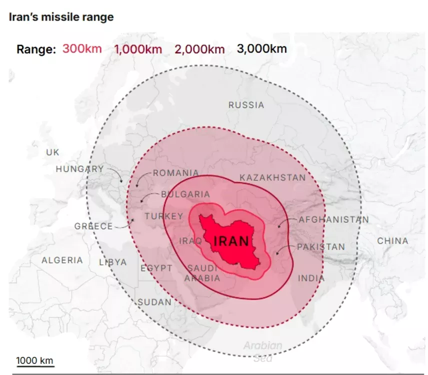 Dronele kamikaze iraniene din familia Shahed au o autonomie de aproximativ 2.500 de kilometri. Ele au fost folosite pe scară largă de Rusia în războiul din Ucraina, provocând distrugeri semnificative și victime civile.