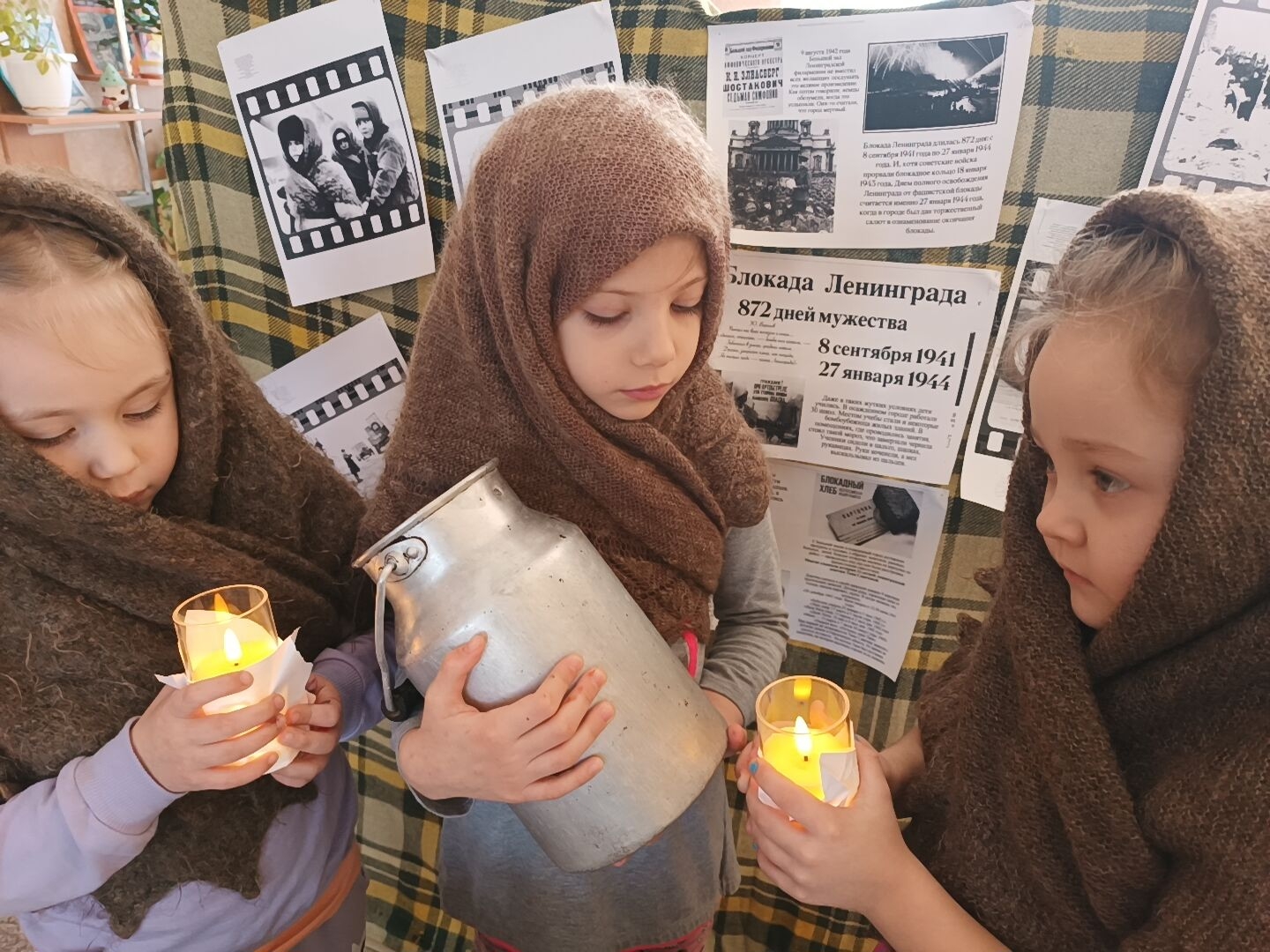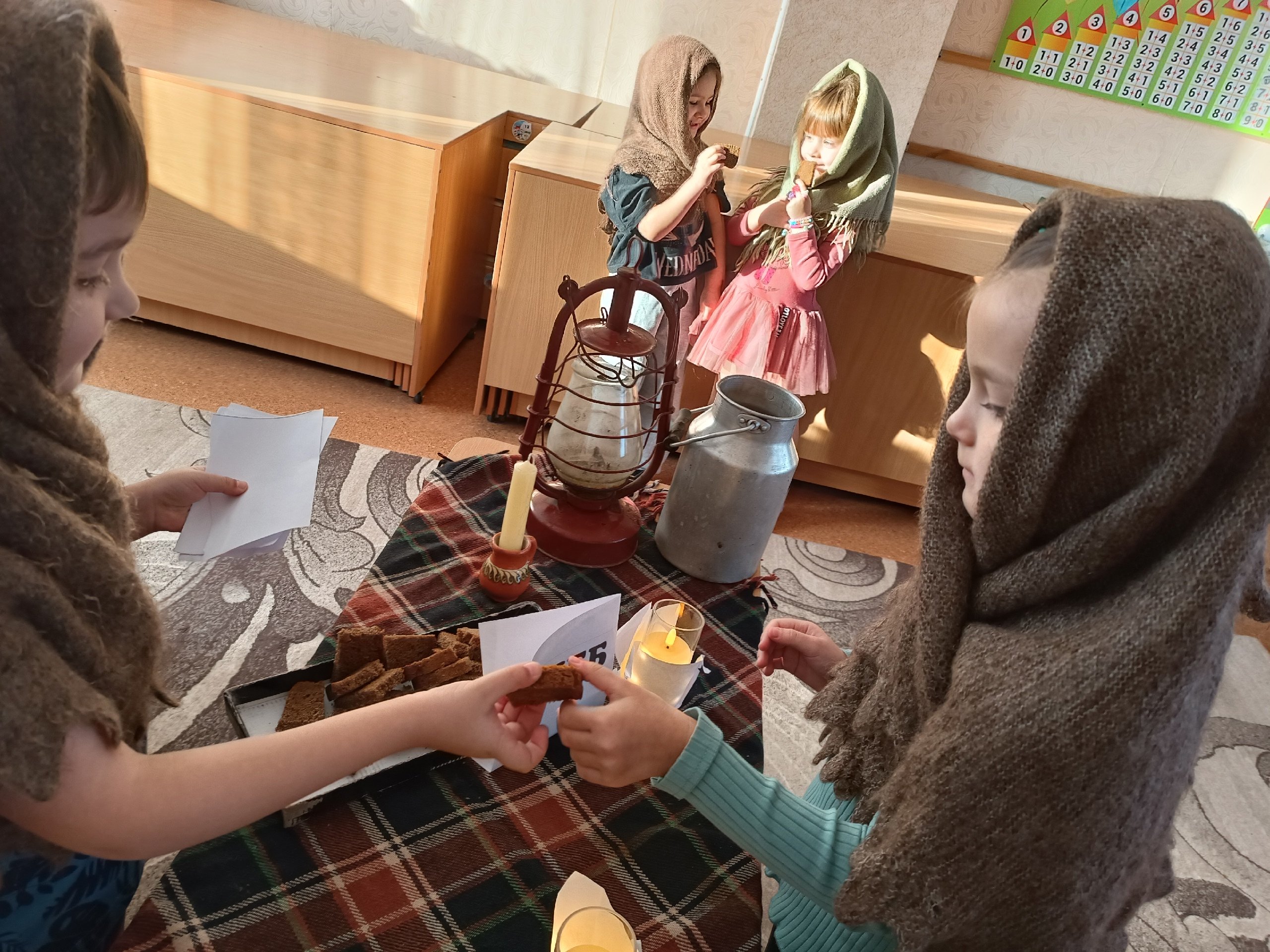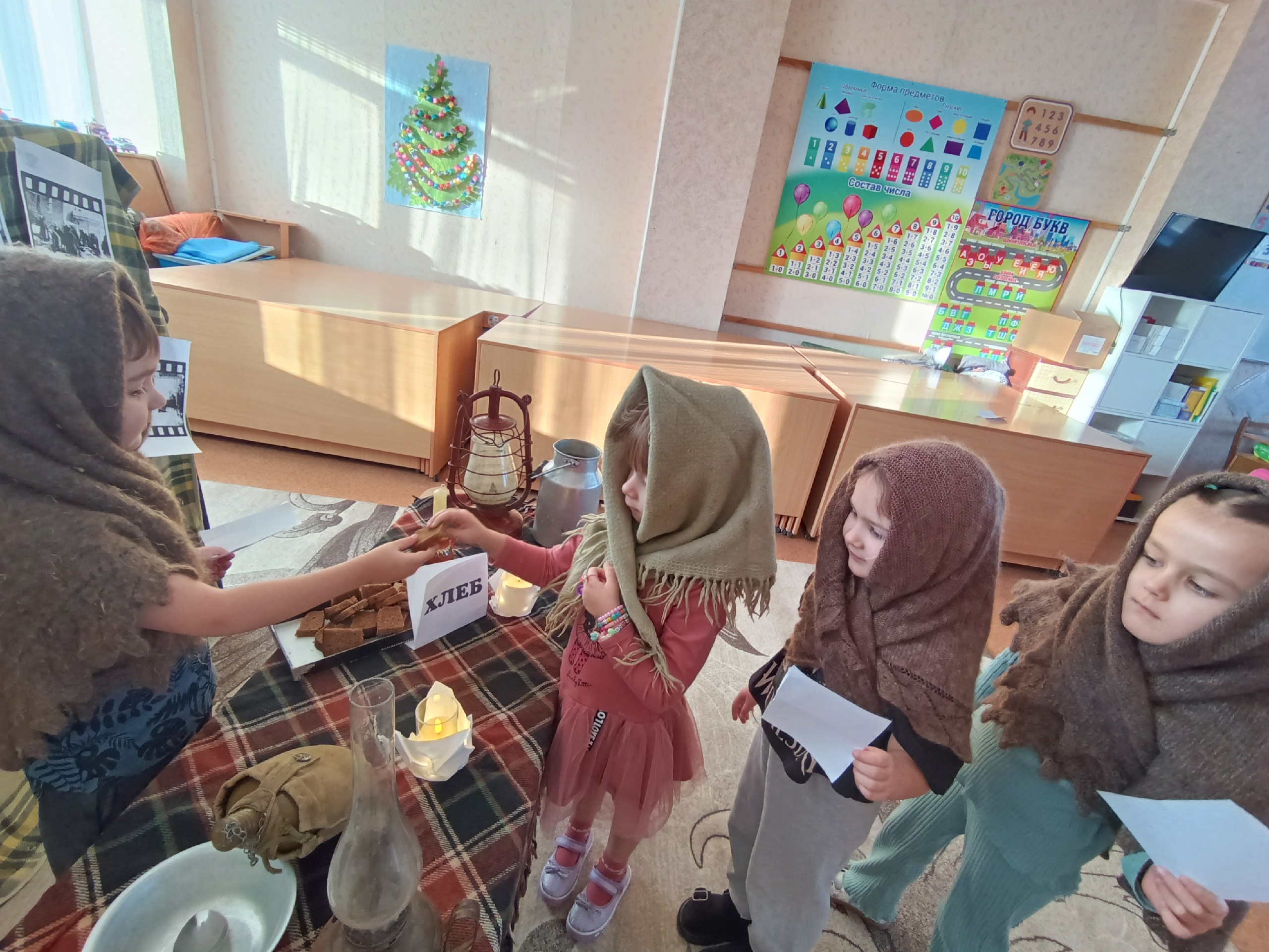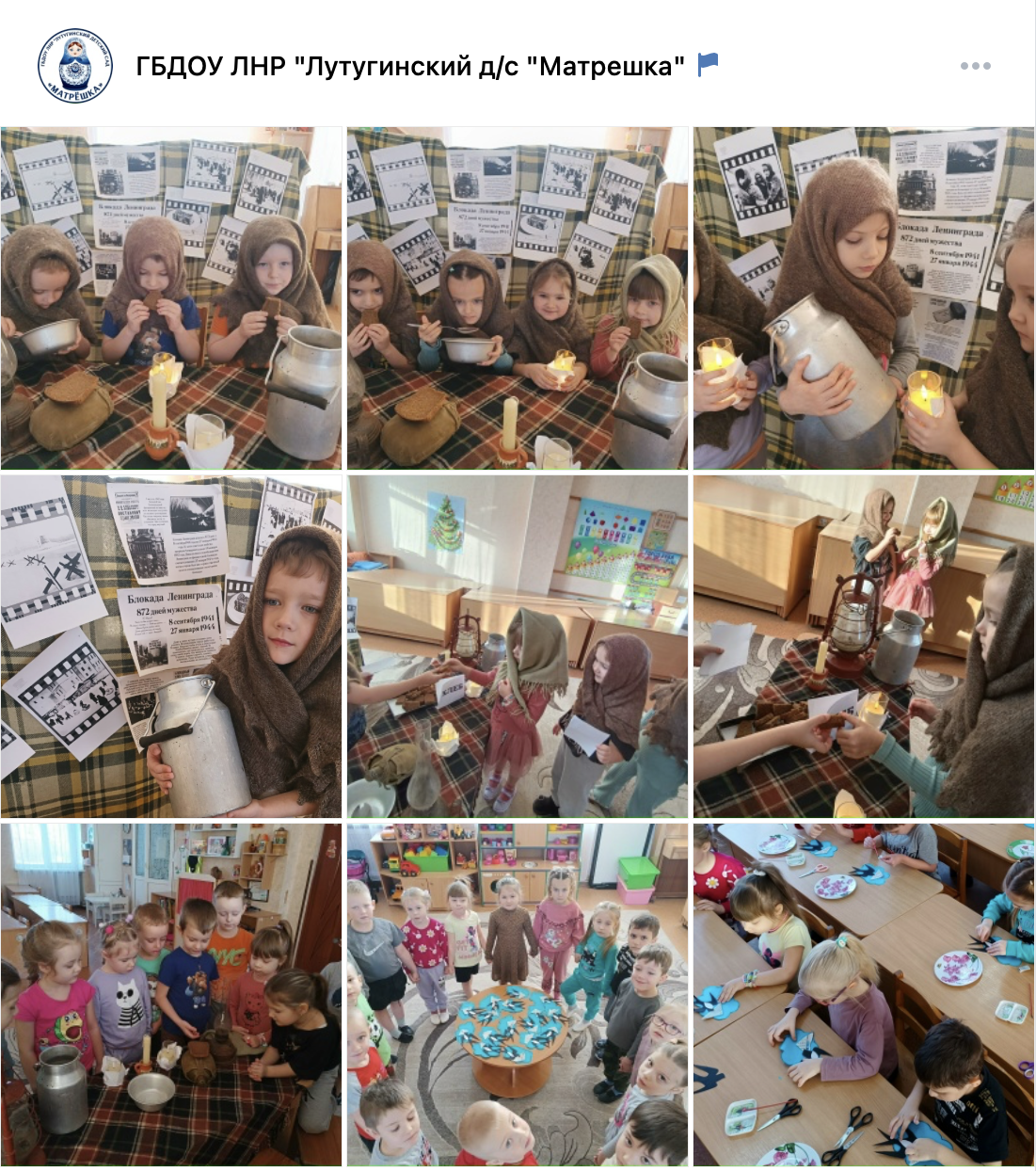 Children from a kindergarten in the Lugansk region, occupied by Russians, were forced to dress in old clothes and exchange bread for ration cards. The activity took place to commemorate the victims of the Siege of Leningrad.