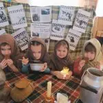 Children from a kindergarten in the Lugansk region, occupied by Russians, were forced to dress in old clothes and exchange bread for ration cards. The activity took place to commemorate the victims of the Siege of Leningrad.