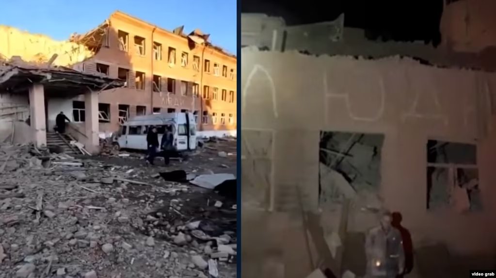 - Детальная съемка здания школы-интерната с дрона показывает, что основные повреждения пришлись на крышу и 2-3 этажи. Это указывает на удар с воздуха (а не, скажем, на взрыв изнутри здания).