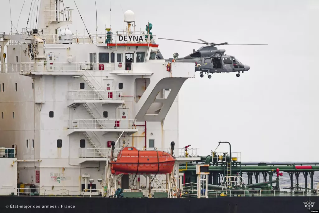 Звадержание танкера, предположительно входящего в российский «теневой флот», 20 марта 2026 года