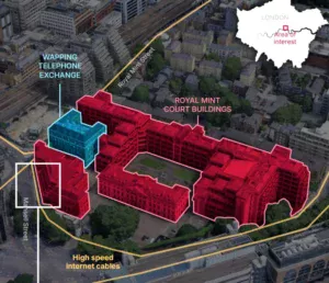 Planurile neredactate ale construcției ar arăta o cameră secretă în colțul nord-vestic al noii ambasade, la doar puțin de un metru de o rețea vitală de cabluri prin fibră optică ce transmite date din districtele financiare City of London și Canary Wharf.